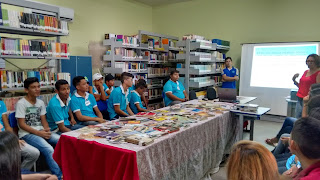 Apresentar o acervo do multimeios - para que os alunos possam saboreá-los - é um gesto anual realizado com dedicação e carinho na Escola Franklin Távora. Este ano a tarefa ficou a cargo da professora Silvana e do professor Maurélio, regente de multimeiros.